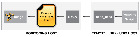 NSCA-ng (ein Ersatz für NSCA) ist ein Addon, das es Ihnen erlaubt, passive Prüf-Resultate von entfernten Linux-/Unix-Hosts an den Icinga-Daemon zu senden, der auf dem Überwachungs-Server läuft. Das ist sehr hilfreich in verteilten und redundanten/Failover-Überwachungs-Umgebungen.