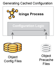 Icinga kann einige Zeit beim analysieren Ihrer Konfigurationsdateien verbringen, besonders dann, wenn Sie Template-Features wie z.B. Vererbung usw. nutzen. Um die Zeit der Analyse Ihrer Konfiguration zu verringern, können Sie Icinga veranlassen, Ihre Konfigurationsdateien für die Zukunft vorzuverarbeiten (pre-process) und vor-zwischenzuspeichern (pre-cache).