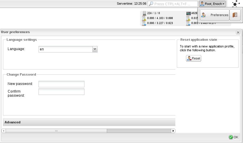 Zurücksetzen des Applikationszustands des Benutzers (rechte obere Ecke -> Preferences)