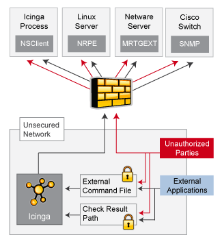 Wenn ein Eindringling in der Lage ist, Prüfergebnisse oder externe Befehle an den Icinga-Daemon zu erteilen, hat er die Möglichkeit, falsche Überwachungsdaten zu übertragen, Sie mit falschen Benachrichtigungen auf die Palme bringen oder Eventhandler-Scripte auszulösen. Wenn Sie Eventhandler-Scripte haben, die Services neu starten, Strom unterbrechen usw., dann kann das ziemlich problematisch sein.